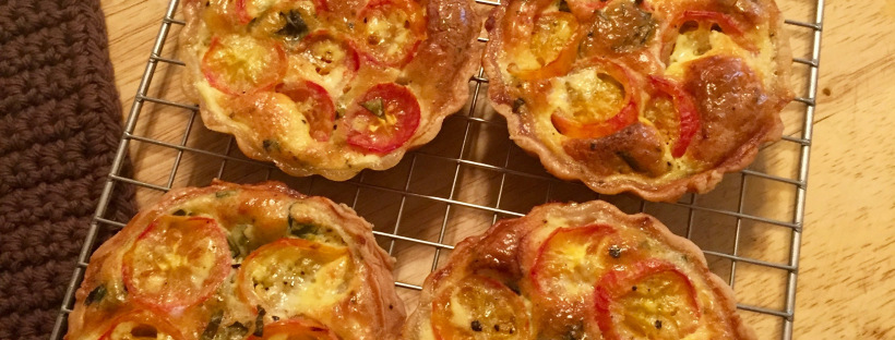 I've had these cute 4" removable bottom tart pans for 2 years and I have never used them! The Sunrise Bumblebee heirloom tomatoes I started from seed in March are becoming abundant in my garden and New York Times Cooking featured an Heirloom Tomato Tart earlier this week. I could not resist. I adapted this … Continue reading Adorable Heirloom Tomato Tarts